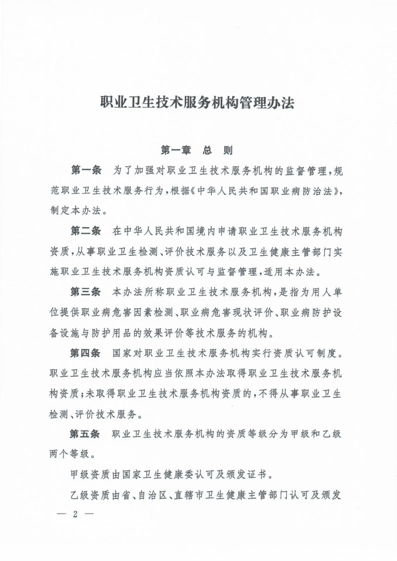 職業(yè)衛(wèi)生技術(shù)服務(wù)機(jī)構(gòu)管理辦法(國家衛(wèi)生健康委令第4號(hào))